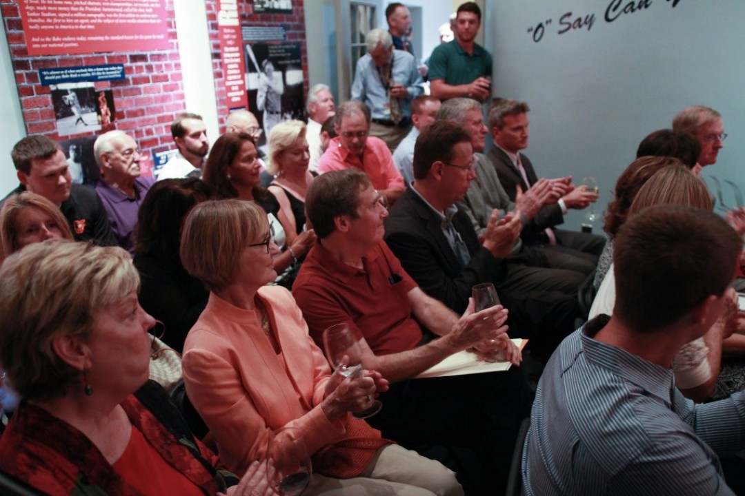 On September 10, 2015, the Babe Ruth Birthplace Museum hosted Eddie Murray in an exclusive wine tasting event. Guests were the first to receive Eddie’s signature wine, “The Roundtripper,” complete with the Hall of Famer’s signature. 105.7’s Scott Garceau led a Q&A session after an evening of fine wines, hors d’oeuvres, and a fantastic atmosphere in the newly renovated Babe Ruth Birthplace. See some of the highlights below!